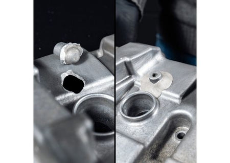 Steel plasticine. Wide range of use in households, cars and boats. Two-component-mass which solidifies to steel hardness 15 minutes after being mixed. It can be grounded, tapped, filed and painted even after 1 hour. Also binds in presence of water.