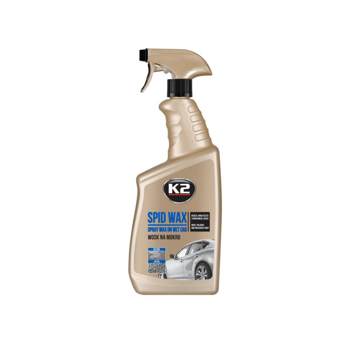 700ML Applied on pre-washed body. Enables for the water layer to diminute into single drops that start to flow down by themselves. Acts fast and effectively. Restores the natural colour and glaze of the paint. May also be applied onto a dry body. Creates an invisible protective layer. Recommended for all paint types. Instructions: (1) After washing and rising the car, apply to the paint while it stilll wet. (2) Best to wipe using a K2 Pano Chamois Sintético 66x43, or a microfiber cloth. Water can also be removed by using special squeeges such as Masner Lâmina de Silicone Flexível, for car bodies.