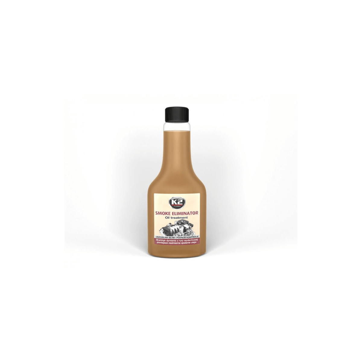 355ml K2 SMOKE ELIMINATOR is a highly concentrated, specially designed oil soluble treatment to reduce exhaust smoke and oil burning. Improves compression and engine performance, reduces engine noise. Ensures a strong protective oil lm - when added to the mineral oil, enriches its properties and makes them similar to synthetic oil characteristics. For use in all types of engines, both worn and new, gasoline, LPG and Diesel. Miscible with all types of mineral and synthetic oils. Can also be added to the gear oils of GL-5 class to quiet and seal the transmission. Particularly recommended for engines operating in heavy load conditions (mountain towing, high temperatures, full speed drive on highways, city traffic). Does not contain harmful P.T.F.E.