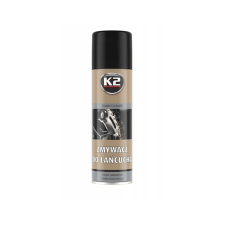 K2 CHAIN CLEANER - a high-performance agent for cleaning all kinds of chains in motorcycles, go-karts, quads and bicycles. Removes dirt from oil, grease, mud and dirt. It helps to clean the chain quickly and without unnecessary effort. It is enough to apply the product on the chain and sprockets, wait a few minutes and then rinse the dirt with running water. Unlike gasoline or other solvents, it is safe for all types of chains, including O-rings, Z-rings and X-rings, as well as for painted and rubber surfaces. Perfectly cleans and degreases the chain and displaces water, protecting it against corrosion and premature wear. A properly cleaned, lubricated and stretched chain can travel up to 50,000 km. Directions for use: Shake well before use. Apply a large amount of K2 CHAIN CLEANER to the chain and sprocket. Wait a few minutes, then remove the dirt with running water or a cloth. Dry the chain thoroughly. After cleaning, lubricate the chain with K2 chain lubricant. If the layer of dirt is extremely large, you can use a brush after applying the product.